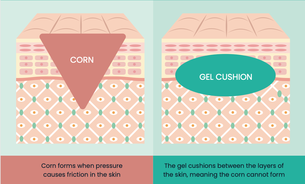 cushion between these layers, Curacorn can eliminate the skin’s reaction to the pressure & callus does not form.